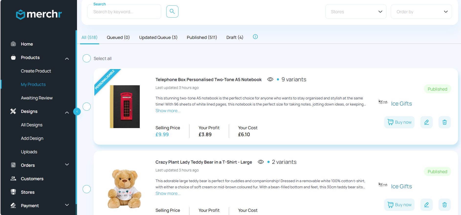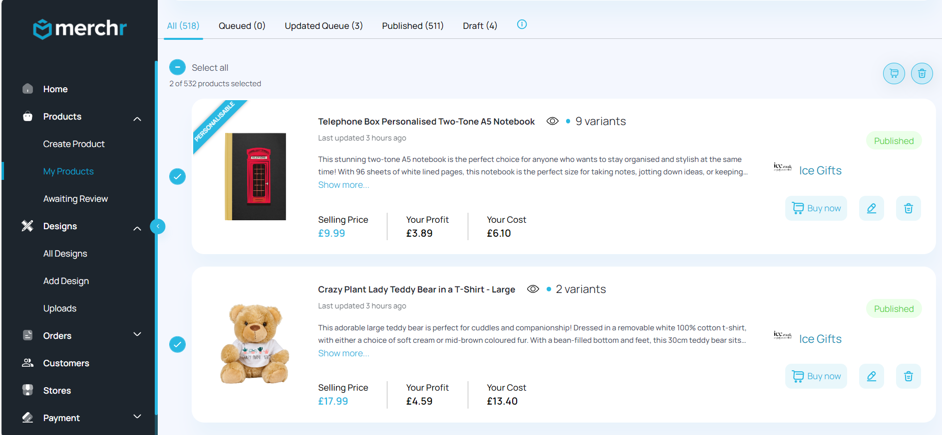- Products will be deleted instantly on Merchr Hosted stores, but may take up to 24 hours to disappear from an integrated Woocommerce or Shopify website.