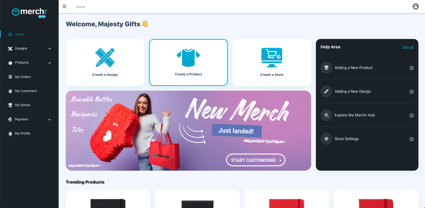 In addition to creating products and designs, the Merchr Hub also provides users with a variety of tools to help them manage their e-commerce business. This includes the ability to view orders from their website, view customer information, and add payment details.
